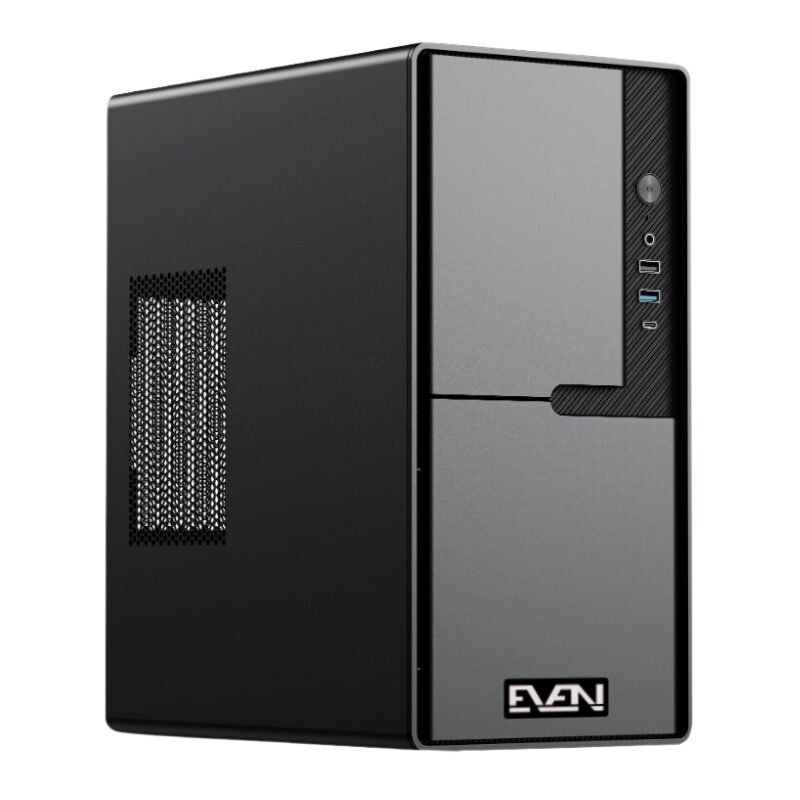 PC Even Office i5-12400. Uma torre compacta mATX com 16GB de RAM e SSD NVMe de 500GB. Oferece alto desempenho para trabalho de escritório com múltiplas portas USB e suporte para dois monitores via HDMI e VGA. Eficiência e rapidez ao melhor preço.