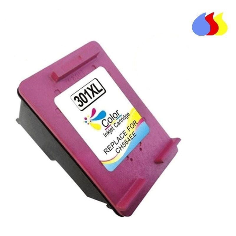 Tinteiro Reciclado HP 301XL Cores (CH564EE) com 18 ml. Qualidade premium, certificação ISO9001 e até 3x mais tinta que o original. Apresenta o nível de tinta.